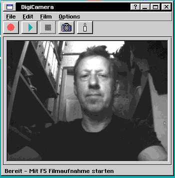 Ein Programm zum Aufnehmen / Abspielen von S/W-Videos und von S/W-Fotos. Soweit bisher bekannt, scheint die Connectix Quickcam S/W die einzige unterstützte Kamera sein. Mir gefällt das Flair der S/W-Aufnahmen, sogar die Bildqualität finde ich besser als die manch alter Farb-Webcam. Dank der schnellen Einstellmöglichkeit von Helligkeit, Kontrast und Weißabgleich lassen sich schon vor der Aufnahme auch bei schwierigen Lichtverhältnissen halbwegs brauchbare Einstellungen für halbwegs ansehnliche Aufnahmen erreichen.